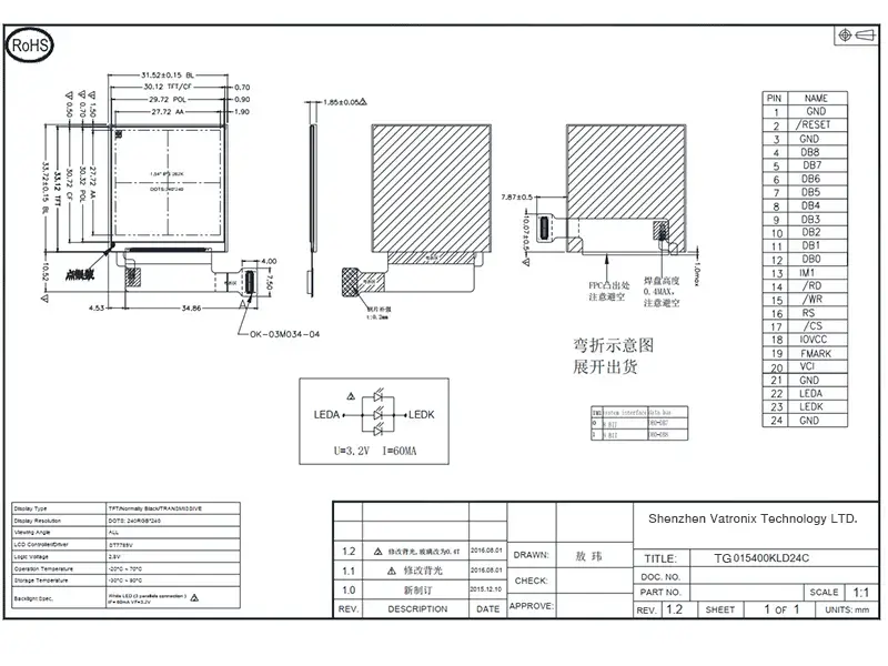 Item | 1.54inch square TFT LCD display |