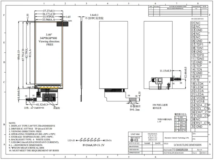 Outline Dimension | 37.27(H)×89(V)×1.6(T) |