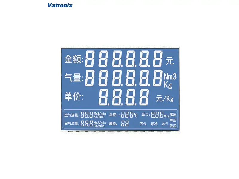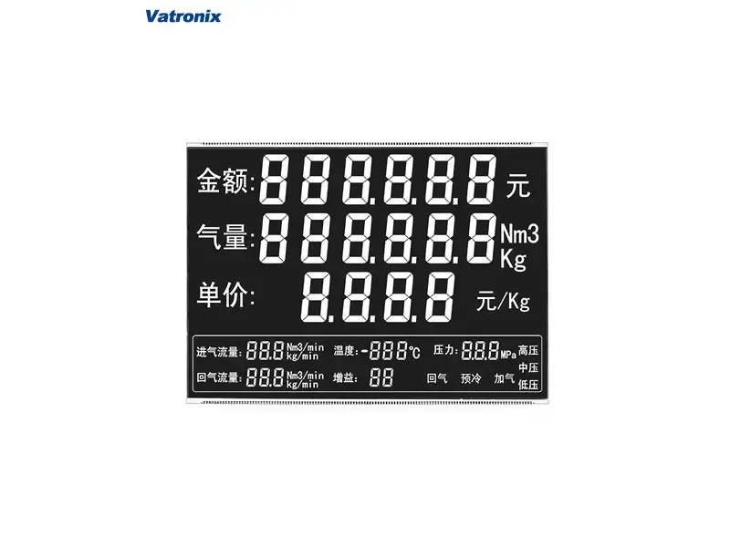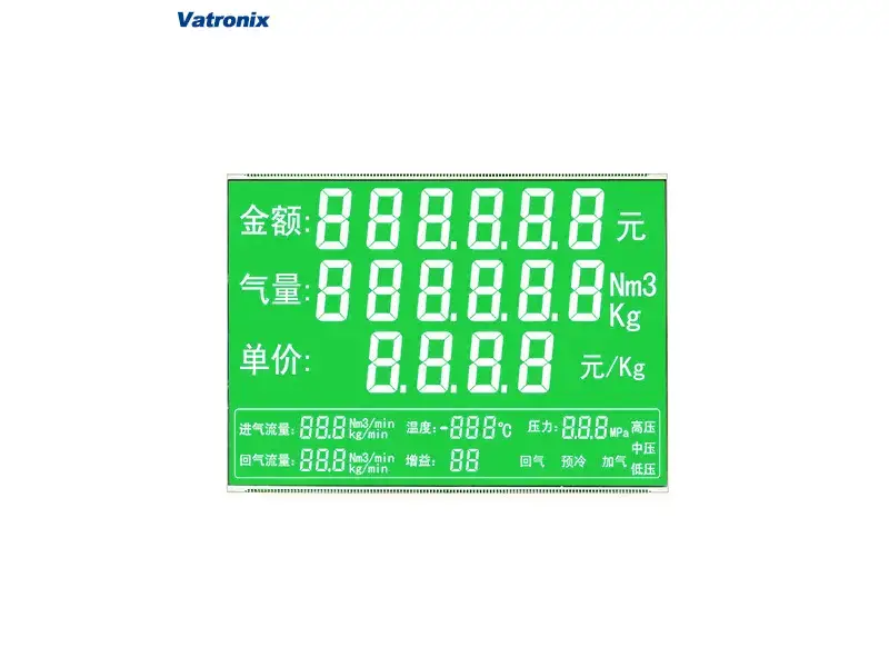 TS2041, made of VA material, 240.0mm*174.0mm, white letters on black background, can also support a variety of monochrome customization. It can be used as LCD display for fuel dispenser, gasoline dispenser, petroleum equipment, etc. It can be used at working temperature from -30 to +80 degree Celsius and storage temperature from -40 to +90 degree Celsius.